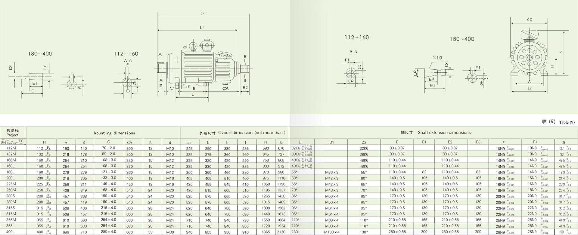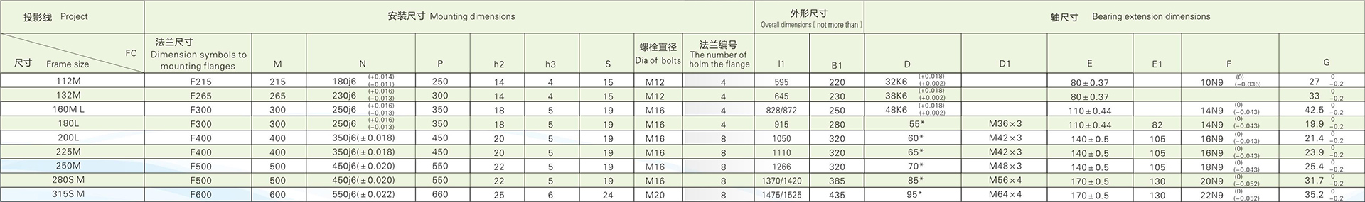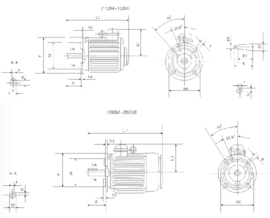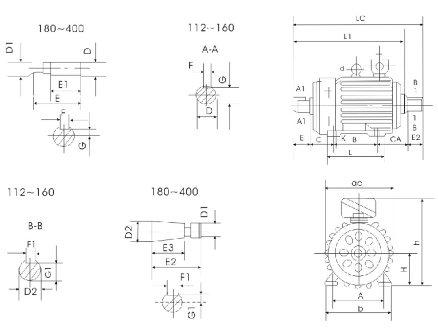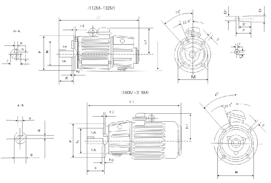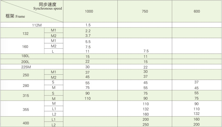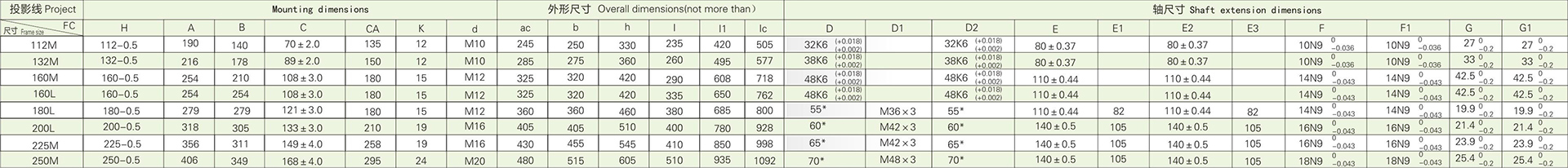 | 機座號 | 112M | 132M1 | 132M2 | 160M1 | 160M2 | 160L | 180L | 200L | 225M | 250M1 | 250M2 | 280S | 280M | ||