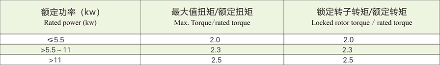 1.9 對于YZ系列電動機,當使用基本負載型時,表3給出了額定電壓下******轉矩和堵轉轉矩與額定轉矩之比的保證值