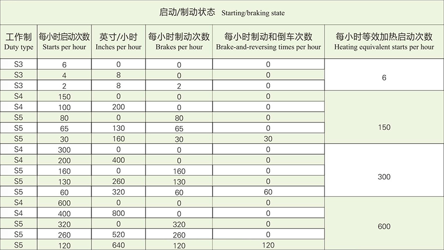 2.3在選擇電機時,需要將不同類型的起動和制動狀態(tài)根據(jù)等效關系減少為等效起動次數(shù)。然后將其用于確定電動機的額定值。表4給出了一個典型的簡化示例。