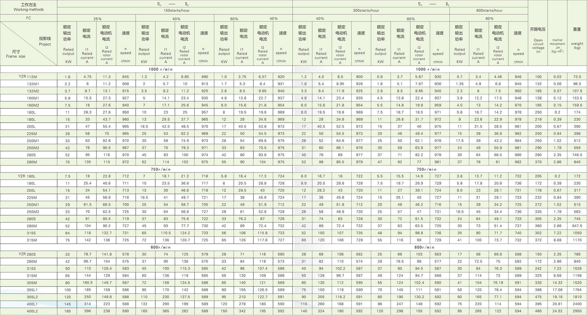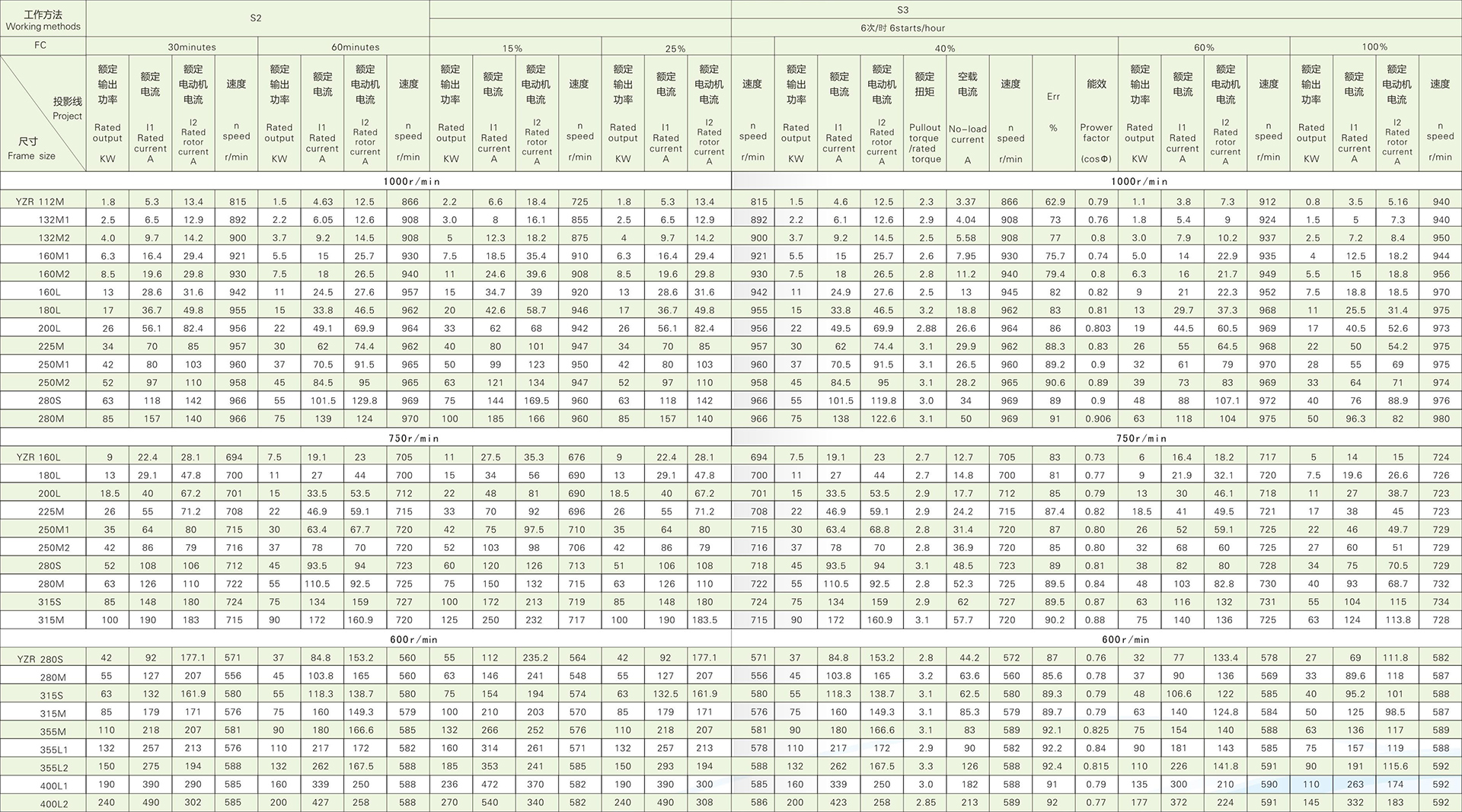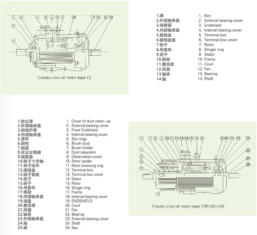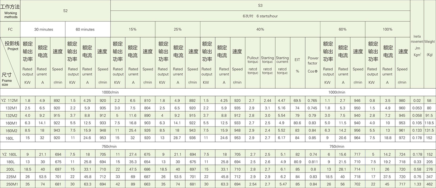 1.1 YZR和YZ系列是最新的設計,具有大過載能力和高機械強度,特別適合驅動各種類型的冶金機械和起重機和/或其他類似設備。YZR系列為繞線轉子電機,YZ系列為籠型電機。