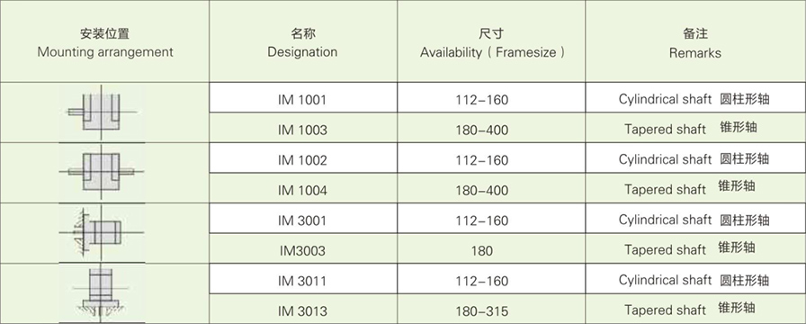 | 結構及安裝形式 | 代號 | 制造范圍(機座號) |