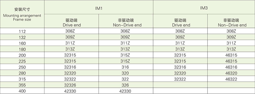 表11 YZR IM.3001IM3003和IM3013尺寸表